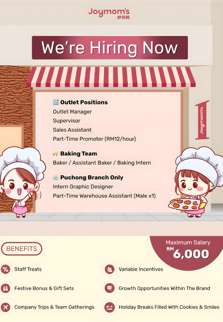 - Full-Time Baker: RM2,000 – RM2,500