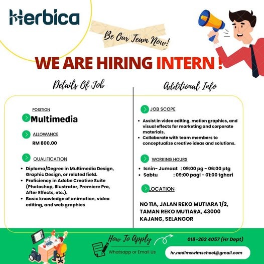 We are looking for a creative Multimedia Intern to support our marketing and content production team under both Nadim Akuatik and Herbica’s upcoming health supplement brand.